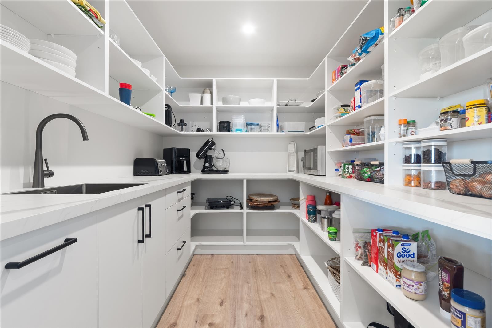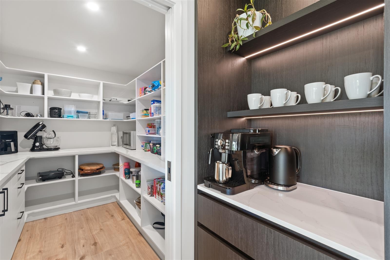 Storage was a key consideration in the design, with generous cabinetry ensuring everything has its place. To further enhance the functionality of the space, an adjoining scullery provides additional bench space, storage, and a dedicated area for washing up, helping to keep the main kitchen area clutter-free.