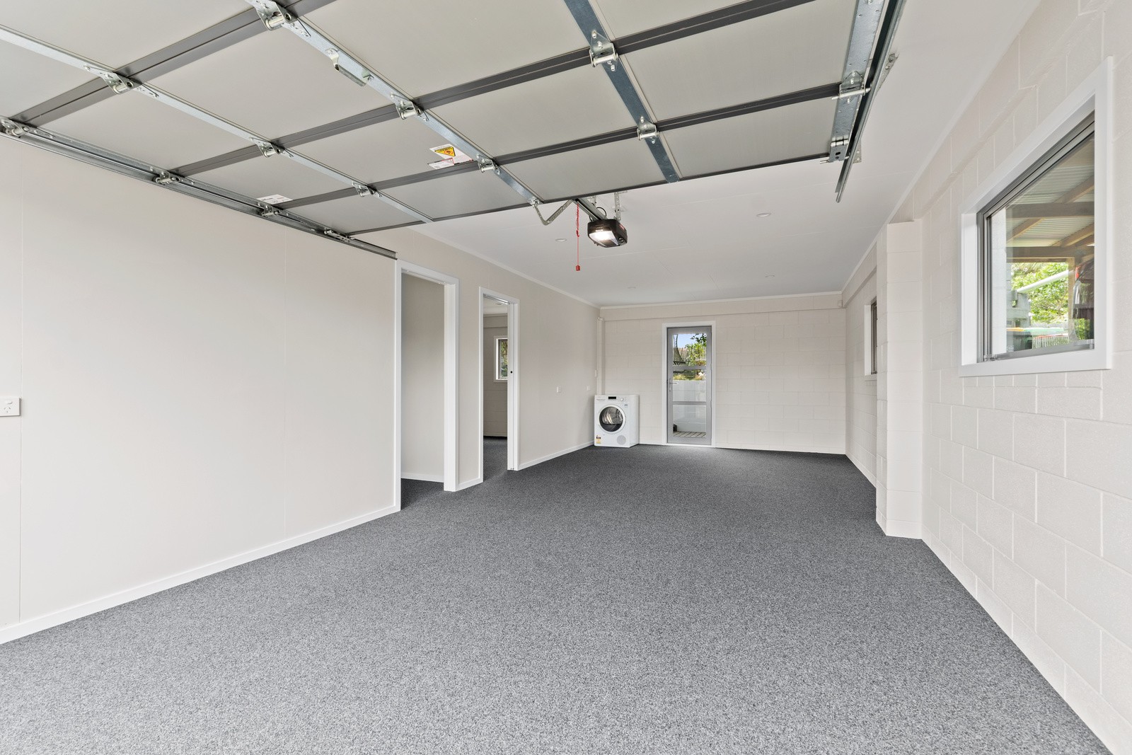 Garage carpet was installed throughout, enhancing both comfort and usability. In one of the newly created rooms, double internal doors were added to form a dedicated storage area, complete with a new shelving system. All new aluminium joinery was also supplied and installed throughout the space.