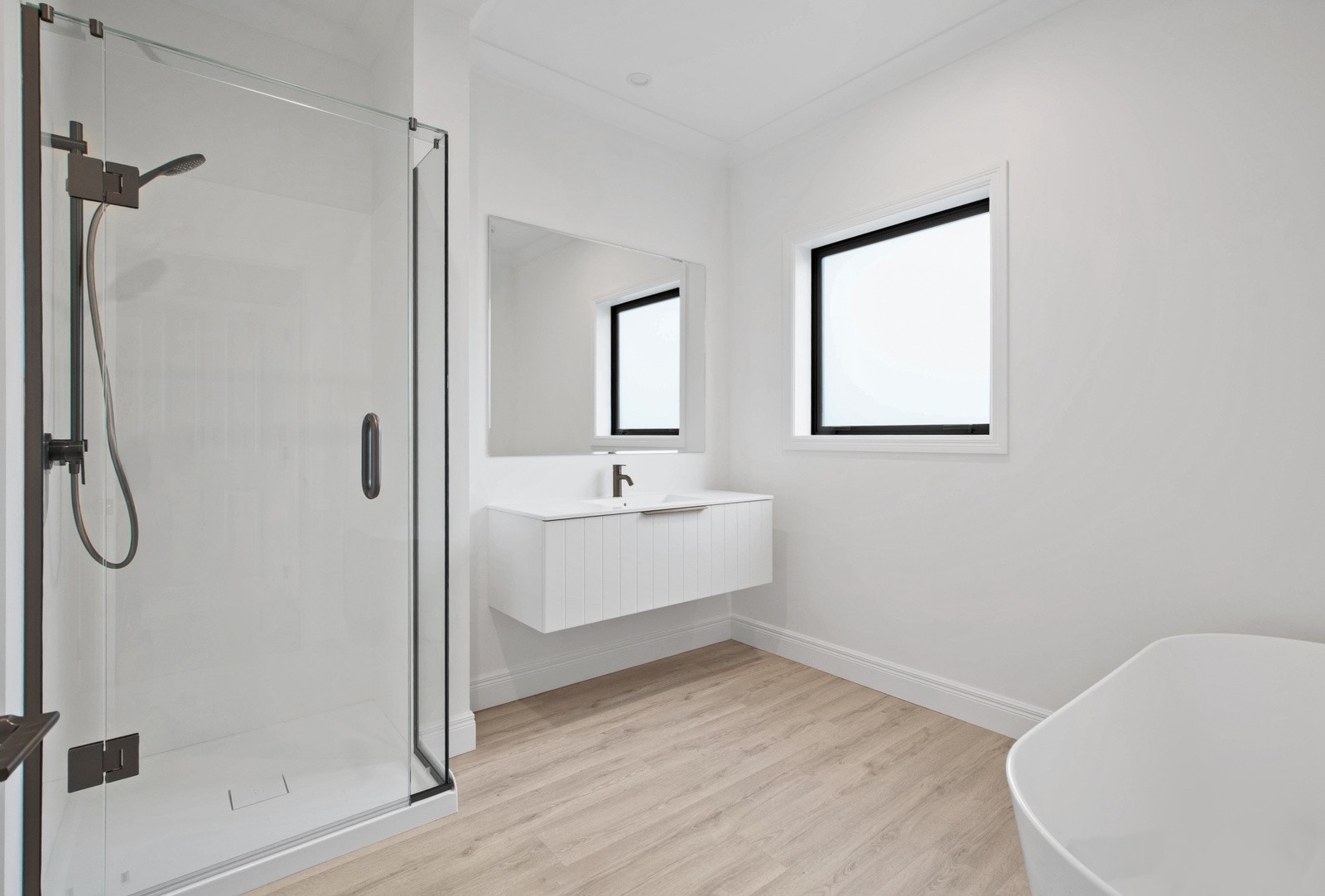 A sleek, modern kitchen in a timeless black and white palette was installed by the team at Kitchen Inspirations, complete with a functional island bench that enhances both usability and flow. Including timber accents which adds a touch of warmth to the space. All new appliances also fitted. New Quick-Step laminate flooring with a timber-look finish was laid throughout the home by JB’s Flooring Xtra Pukekohe, replacing the existing tiled areas and creating a cohesive feel across all spaces.